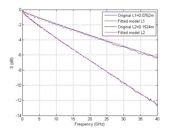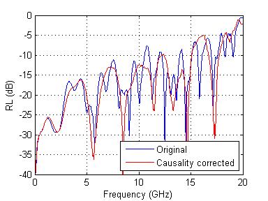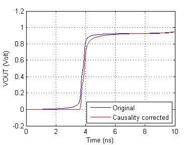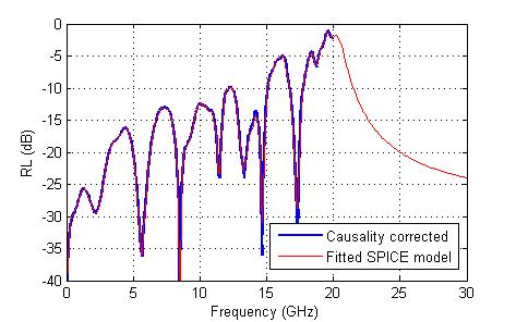 例 2 將參數轉換成等效的 HSPICE 模型只需單鍵執行即可完成。單純地嘗試將non-causal的模型做曲線嵌合(curve-fitting)並無太大益處。而透過 ADK 的因果性校正將可確保嵌合後的模型在原來的頻率範圍外也同時有效。
