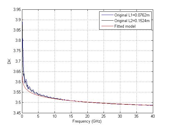 例 4 您是否還透過共振器 (resonator) 來量測 DK 及 DF? ADK 可完成單鍵擷取 frequency-dependent 的 DK 及 DF, 其同時符合在多線的饋入損失 (insertion loss of multiple traces)下 causal 以及 self-consistent。