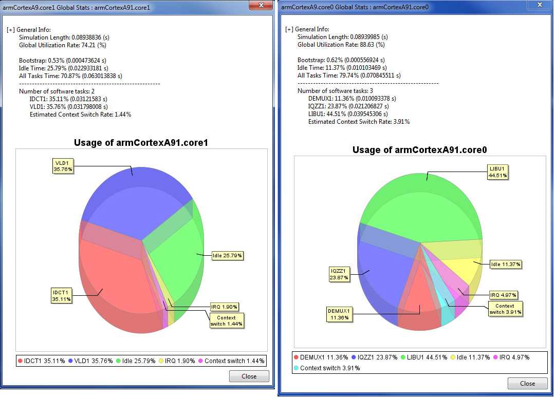 アーキテクチャレベルの設計の調査について、SpaceStudio は強力で他に影響を与えないモニタリングをサポートしています。これにはHWのリソースおよび消費電力、バスのスループットのモニタ、プロセッサの負荷、プロセッサのタスクのスケジューリング等を含みます。以下のSpaceMonitorを参照願います。